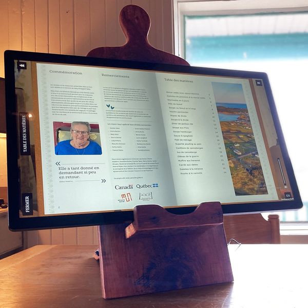 Commandé à Studio La Lucarne par La Société du réseau ÉCONOMUSÉE® , le livre de cuisine interactif Grandma's Kitchen Table est un projet clé en main livré à la boulangerie Grandma's Bakery situé sur le Site patrimonial de Old Harry.